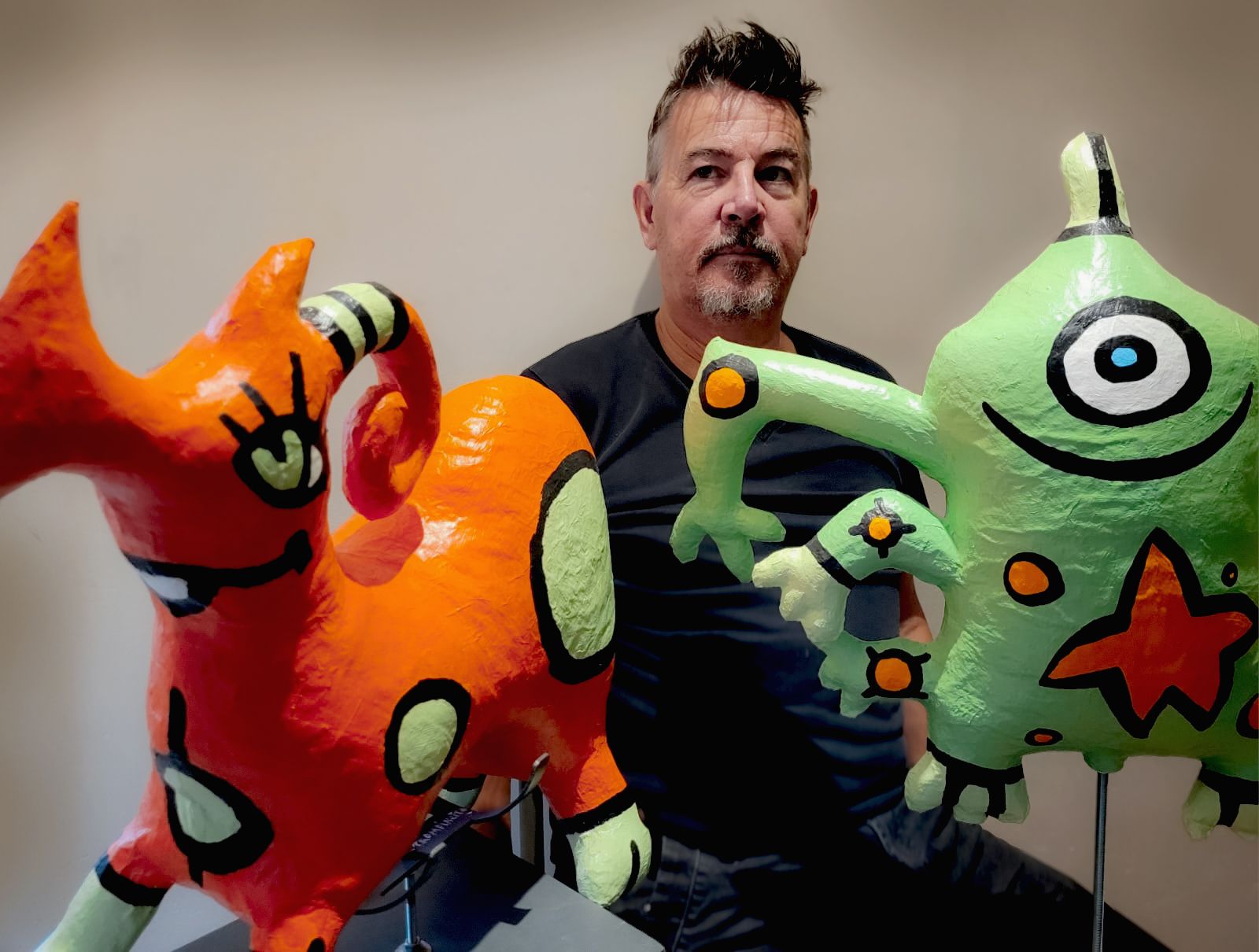 A travers mes toiles et mes mannequins peints, je donne vie à un univers profondément humain et fantasmagorique.