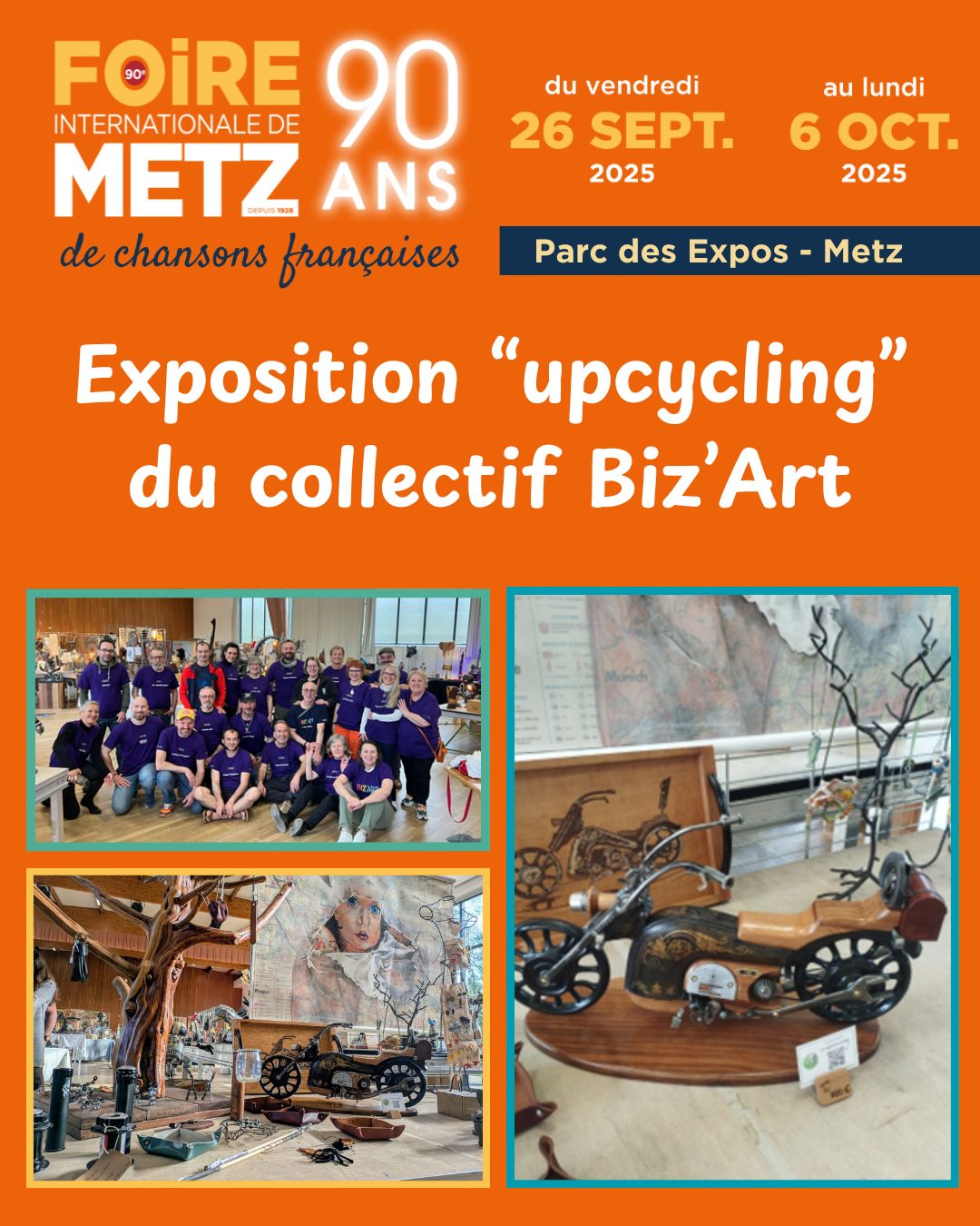 Le Collectif Biz'Art vous donne rendez-vous du 26 Septembre au 06 Octobre 2025 pour une exposition de 250m2 dans le Hall A de la 90éme édition de la Foire Internationale de Metz.